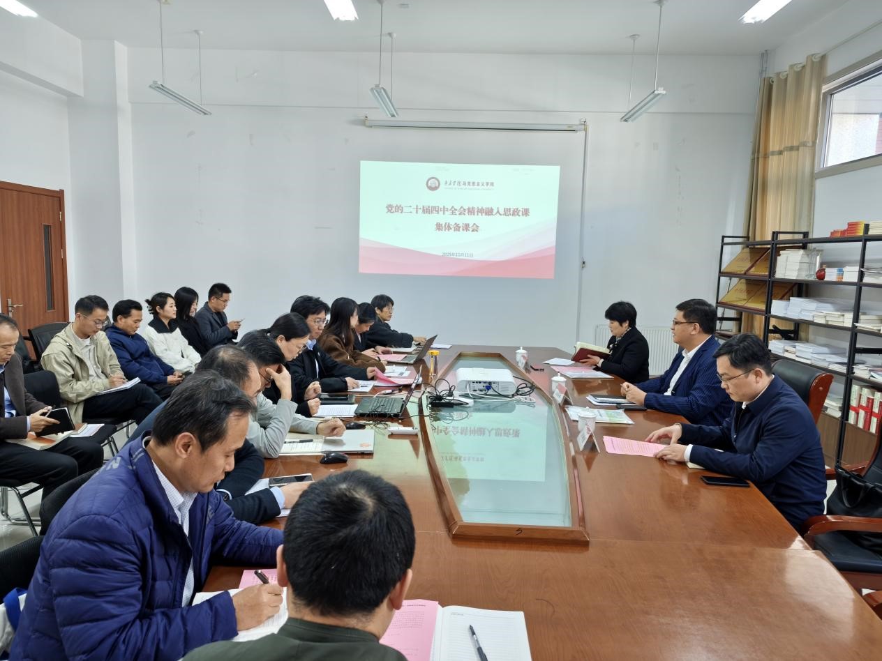 为深入学习贯彻党的二十届四中全会精神,推动党的创新理论与思政课教学深度融合,切实提升课堂育人质量,11月11日下午,马克思主义学院召开“党的二十届四中全会精神融入思政课”集体备课会。校党委副书记、校长丛海林莅临指导,党委(校长)办公室主任闵祥国、教务处副处长李怡,全体思政课教师参加会议。会议由学院党委副书记、院长董嫱嫱主持。