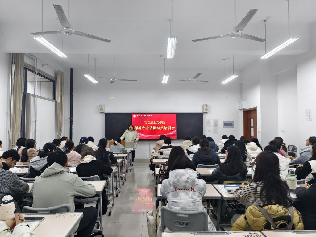 为迎接即将到来的师范专业认证工作,深化全院学生对认证重大意义的理解,明确自身责任与行动方向,11月17日,马克思主义学院辅导员张璐面向全院学生召开了师范专业认证动员培训会。
