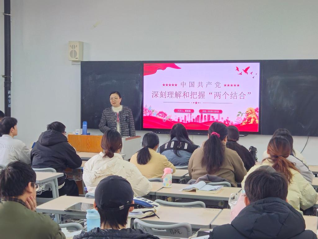 12月1日上午,学院院长董嫱嫱在豁然楼A316教室为思想政治教育专业2023级学生讲授了一堂题为“深刻理解和把握‘两个结合’”的思政课。本次课程围绕马克思主义基本原理同中国具体实际相结合、同中华优秀传统文化相结合这一重要论述,深入探讨了其科学内涵、理论价值及实践路径。