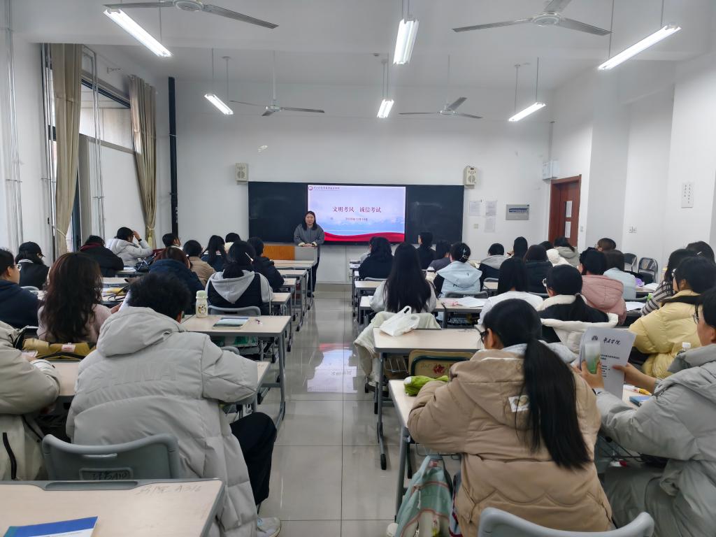 为筑牢学风建设根基,引导学生树立正确考试观,强化诚信立身的价值理念,12月24日,学院辅导员王梦圆面向2025级学生召开“文明考风,诚信考试”主题班会。