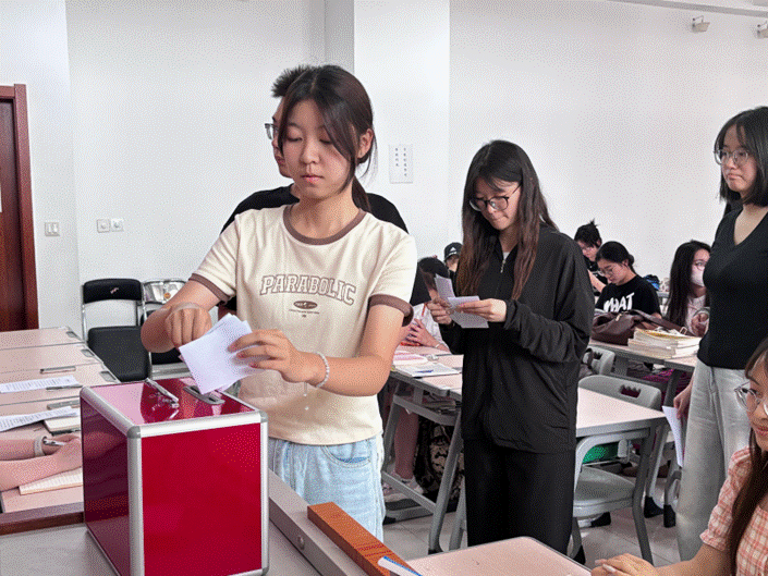 随后,通过监票人、记票人名单。大会进入共青团枣庄学院第三次代表大会暨第九次学生代表大会代表选举环节。为确保选举过程规范透明,大会严格遵循选举程序,在监票人员全程监督下,全体学生代表以无记名差额投票方式,从6名候选人中郑重选出5名正式代表,他们将肩负学院学子的期望,参加共青团枣庄学院第三次代表大会暨第九次学生代表大会。